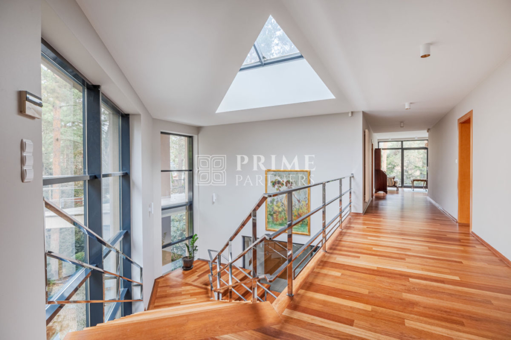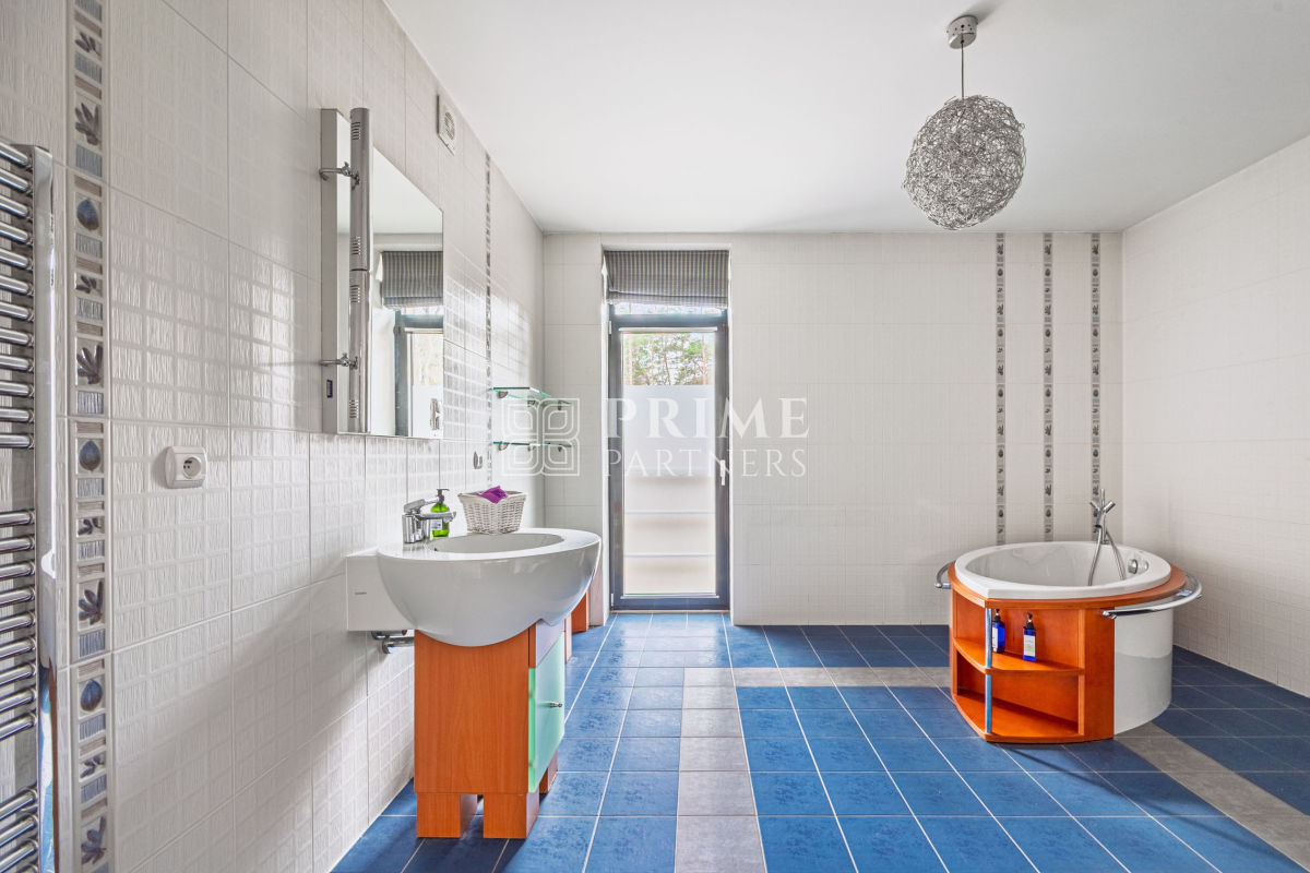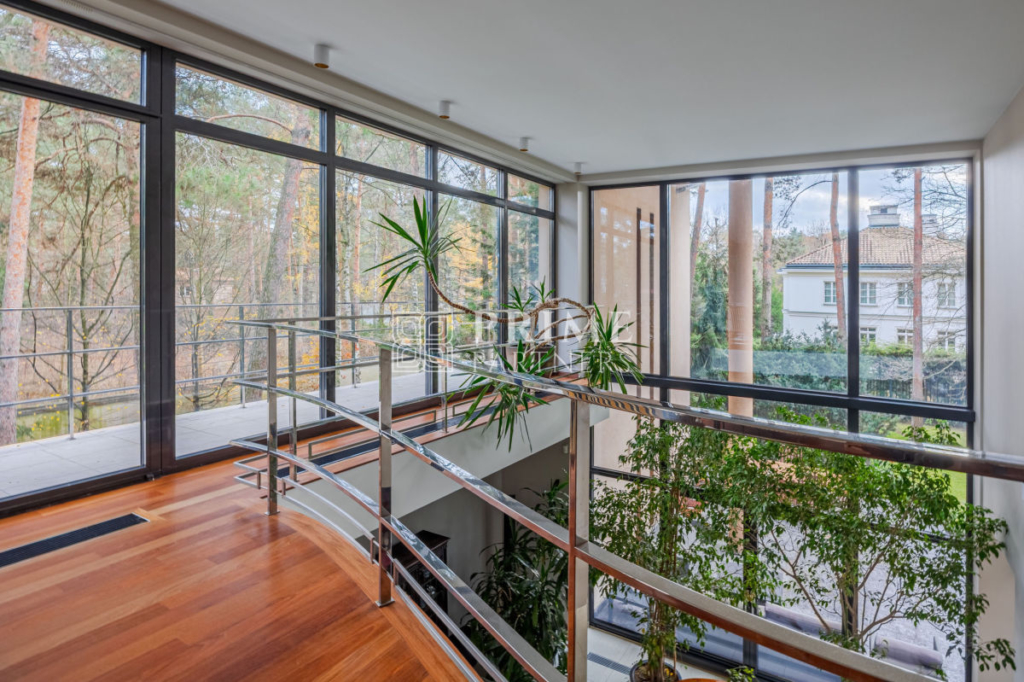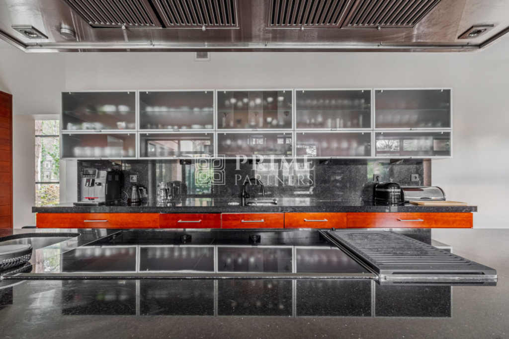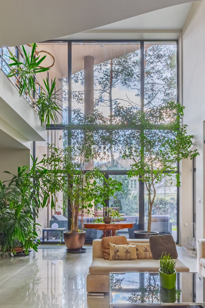 Ta luksusowa rezydencja powstała z najwyższej klasy materiałów, łącząc estetykę z funkcjonalnością. Wysokie sufity podkreślają poczucie przestrzeni i dodają wnętrzom wyjątkowego charakteru, a duże przeszklenia zapewniają obfite naturalne światło, które wprowadza do domu ciepło i harmonię. Wnętrza zachwycają perfekcyjną stolarką, która nadaje im unikalny styl i elegancki charakter. Aby zapewnić mieszkańcom pełen komfort, w domu zamontowano nowoczesną klimatyzację, umożliwiającą utrzymanie idealnego klimatu niezależnie od pory roku.